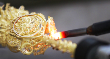 El árbol de la joyería va al joyero de banco que luego separa cada componente de la joyería de la fuente principal cortando la fuente con alicates o una sierra.